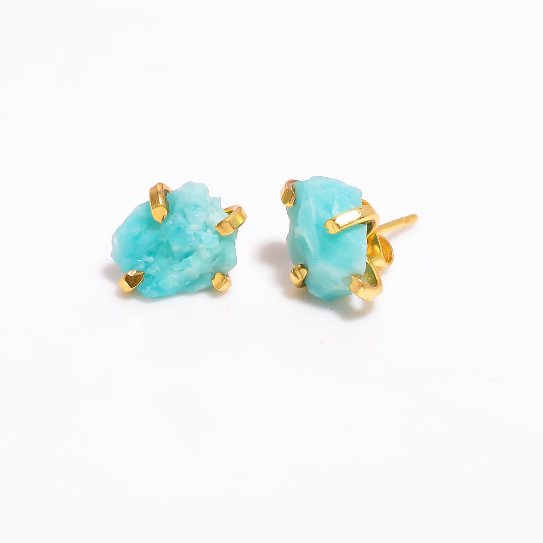 18K Gold Plated Brass Earrings Natural Rough Amazonite Gemstone Stud Earrings