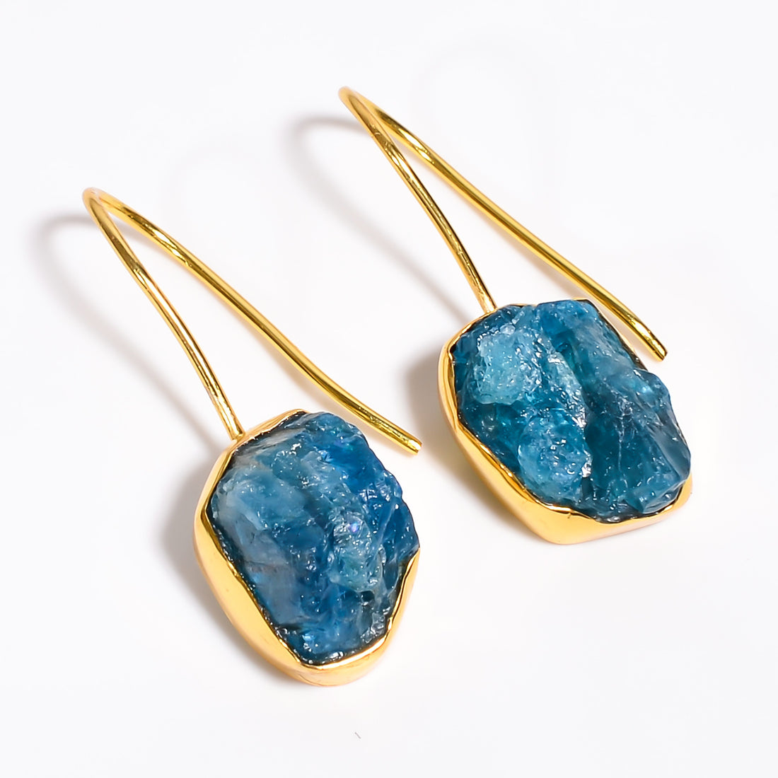 Rough Neon Apatite 18K Gold Plated Earrings