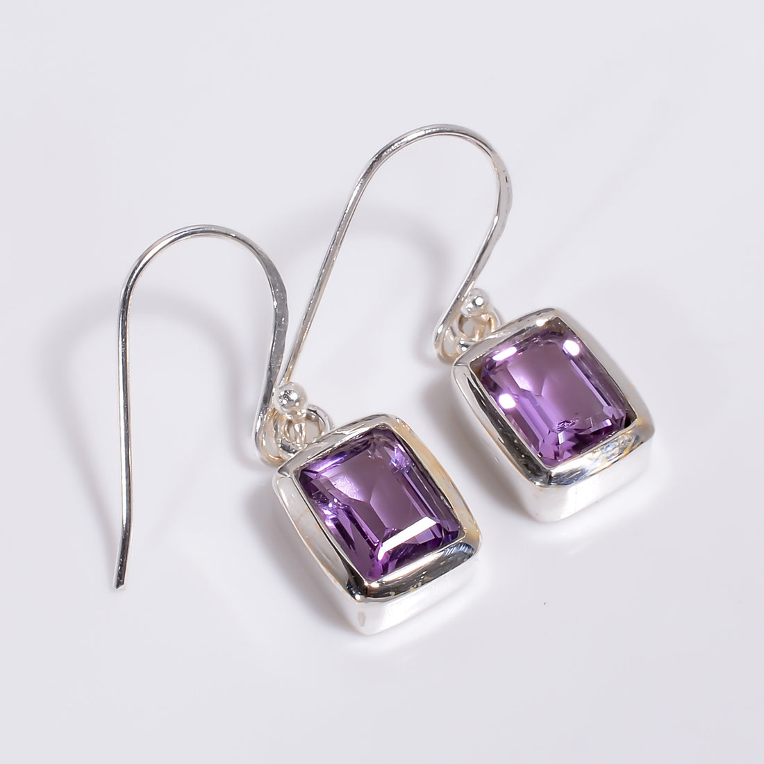 Natural Amethyst Gemstone 925 Silver Drop Earrings