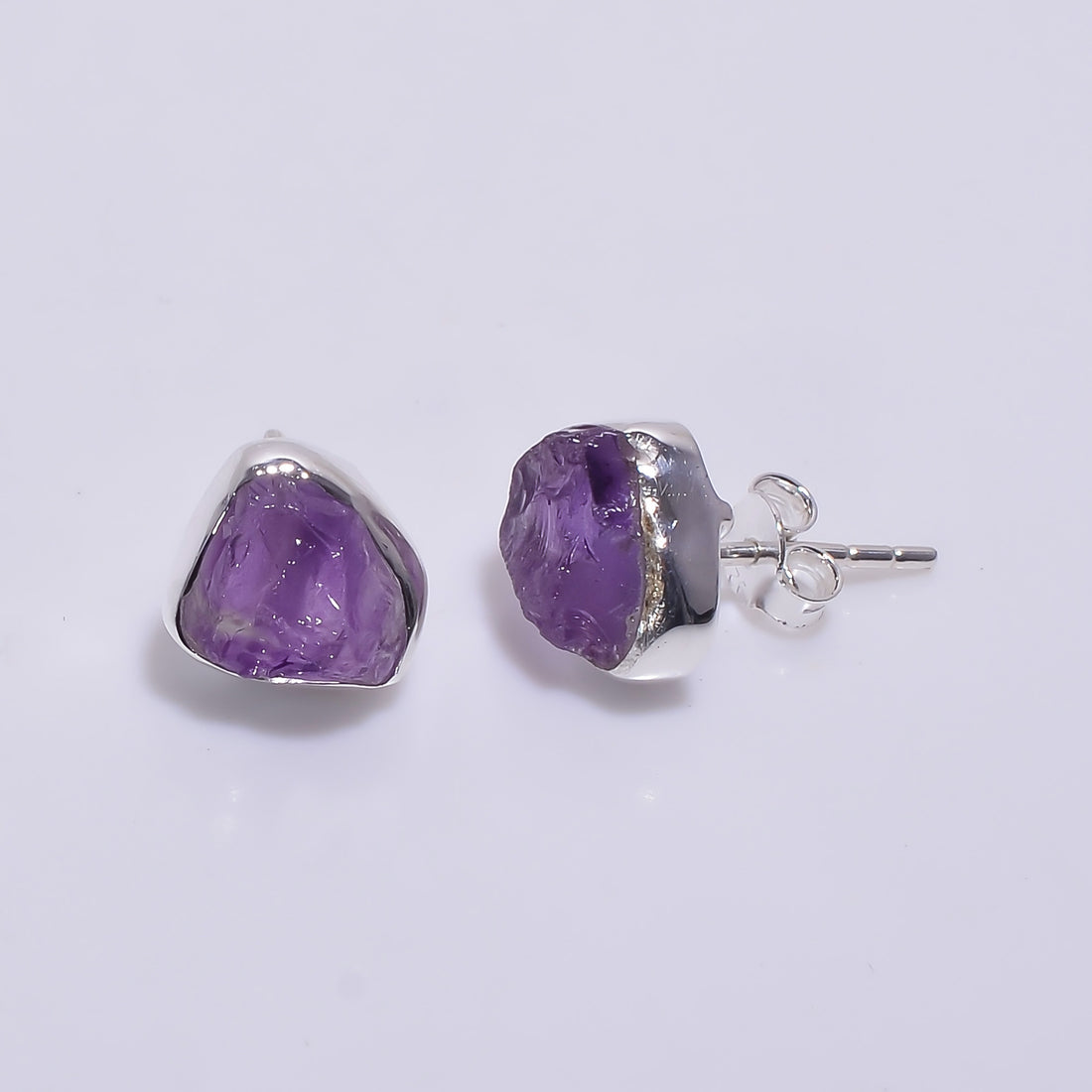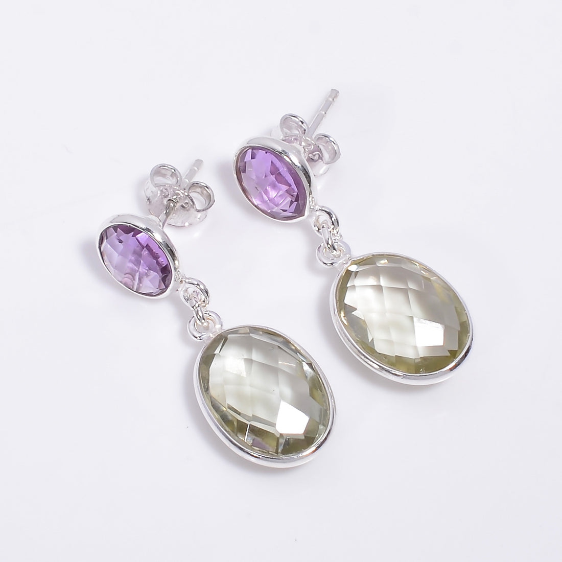 Natural Amethyst Gemstone 925 Silver Drop Earrings