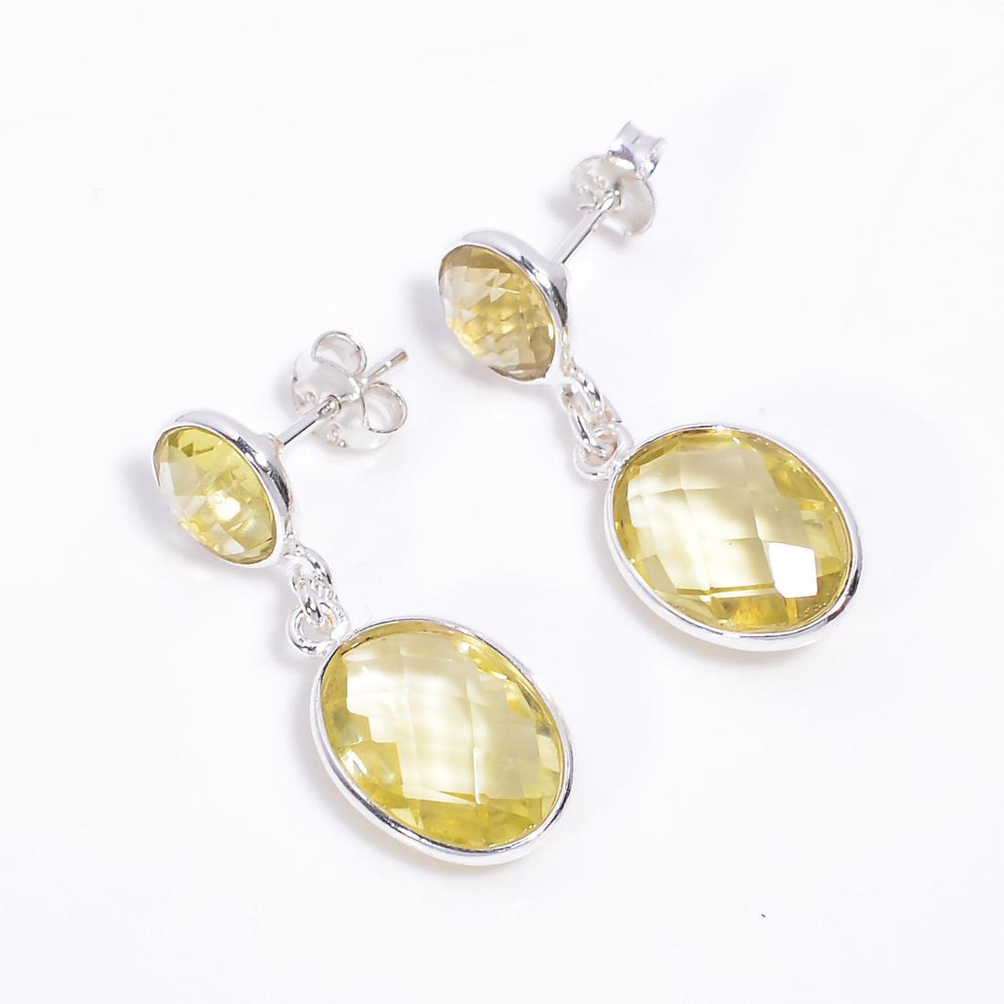 Natural Lemon Quartz 925 Silver Drop Earrings