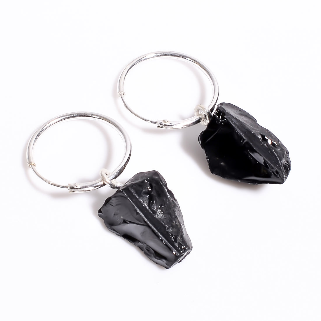 Raw Lemon Quartz 925 Silver Hoop Earrings