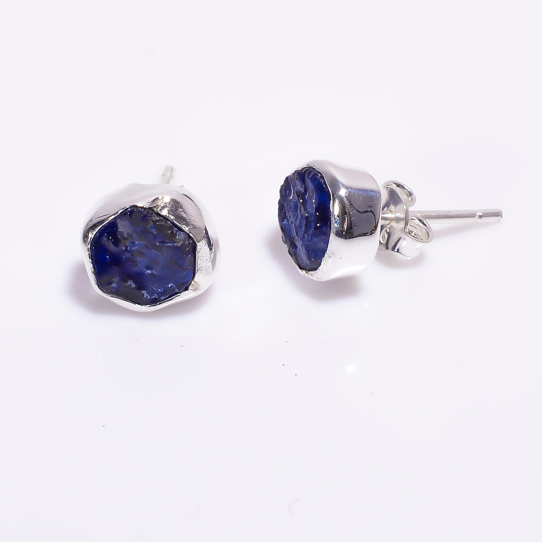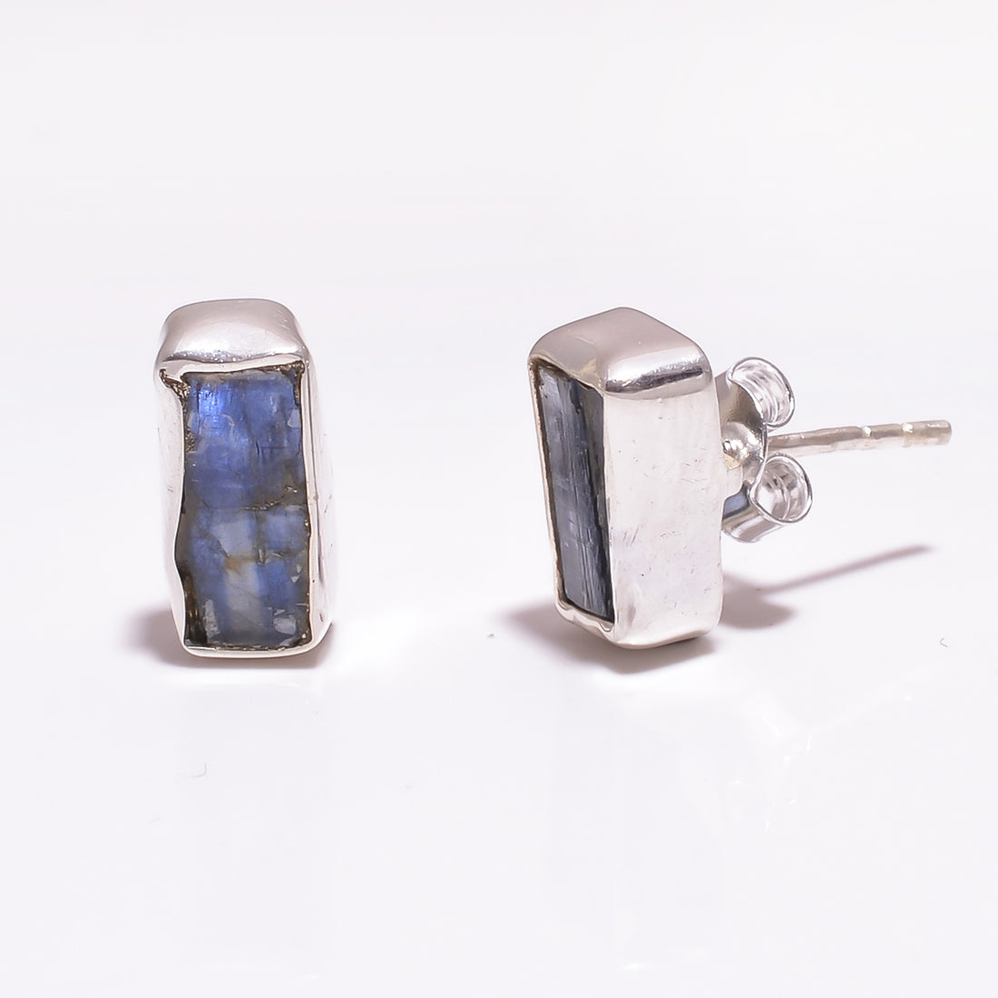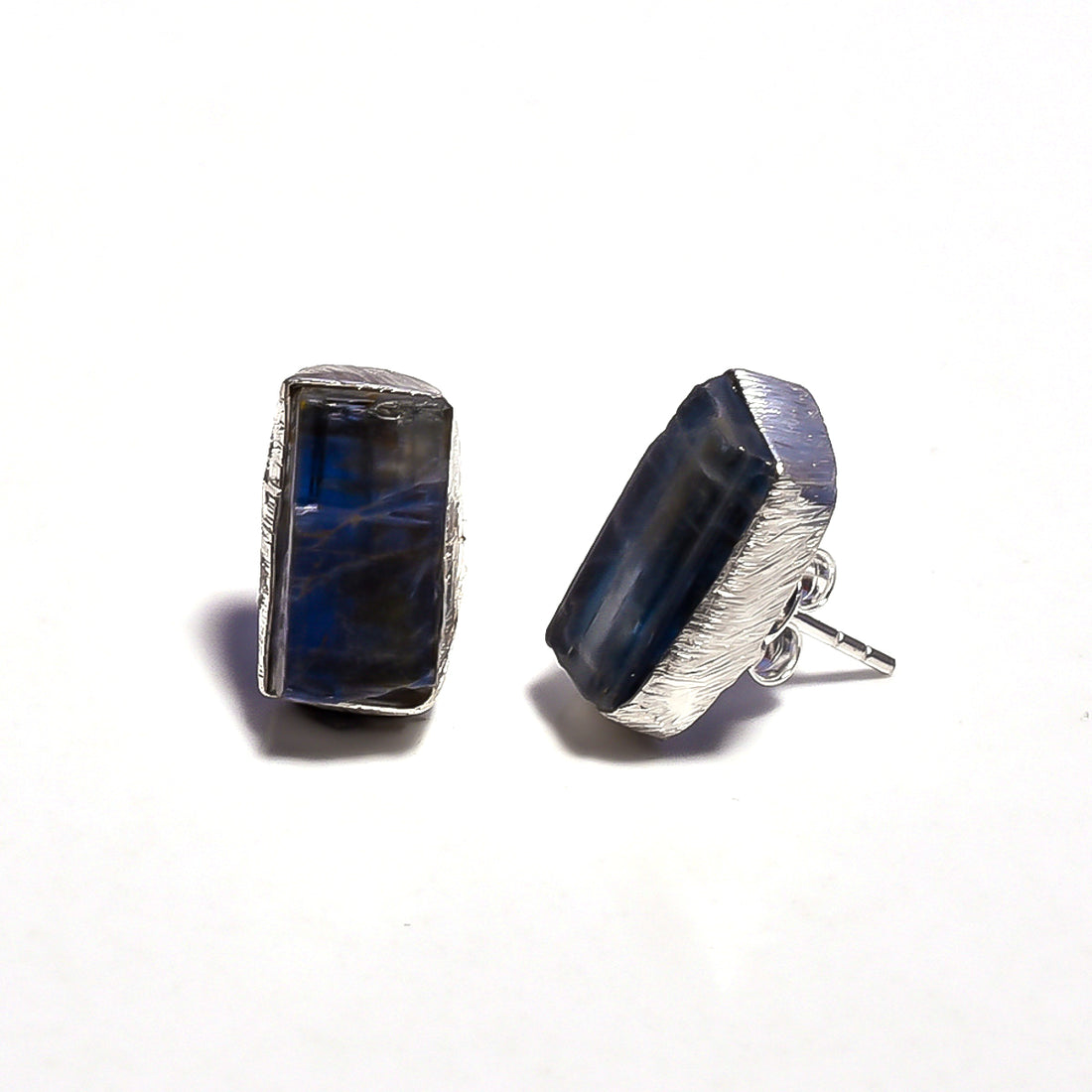Raw Blue Kyanite 925 Silver Stud Earrings