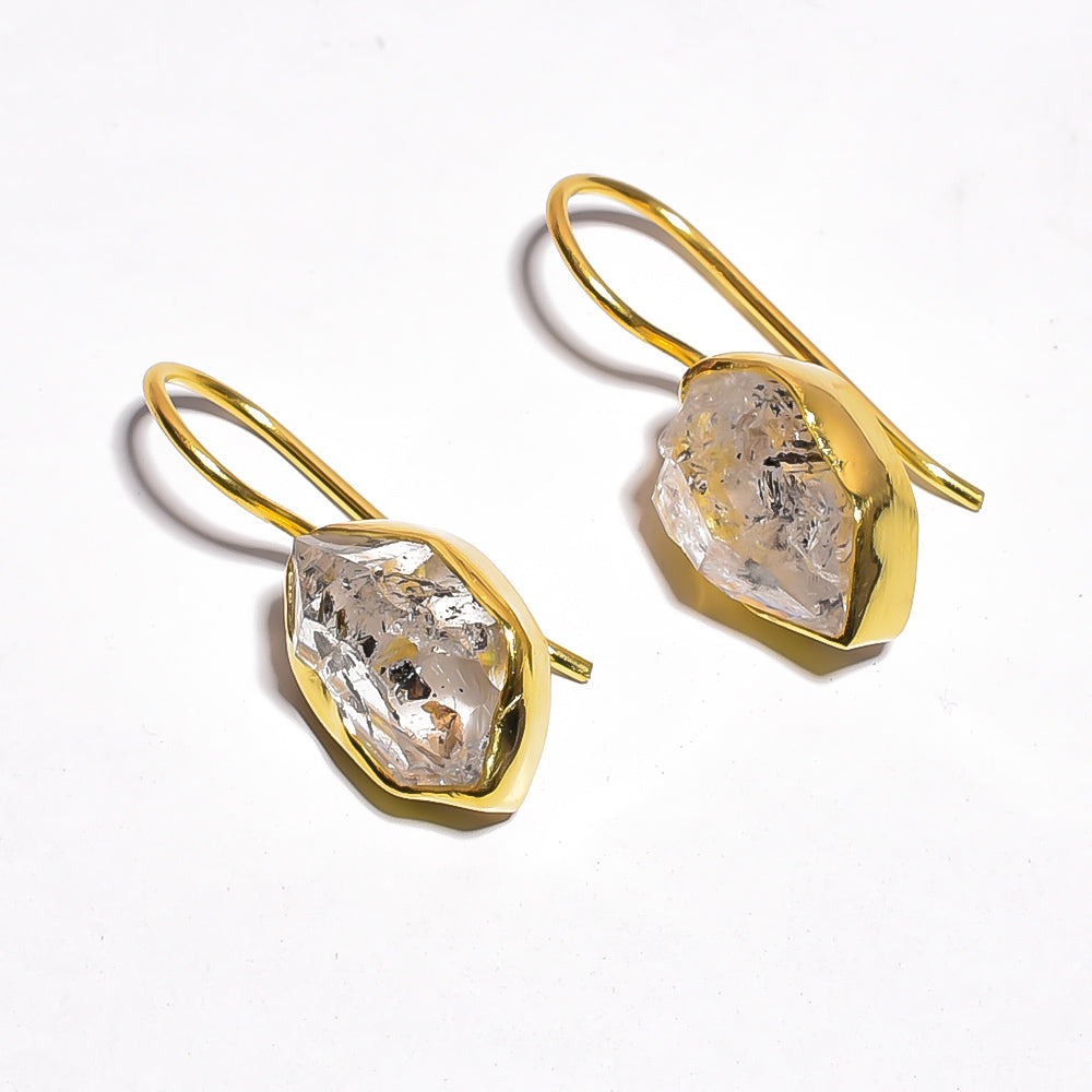 Raw Herkimer Diamond Gold Plated Earrings | 925 Silver