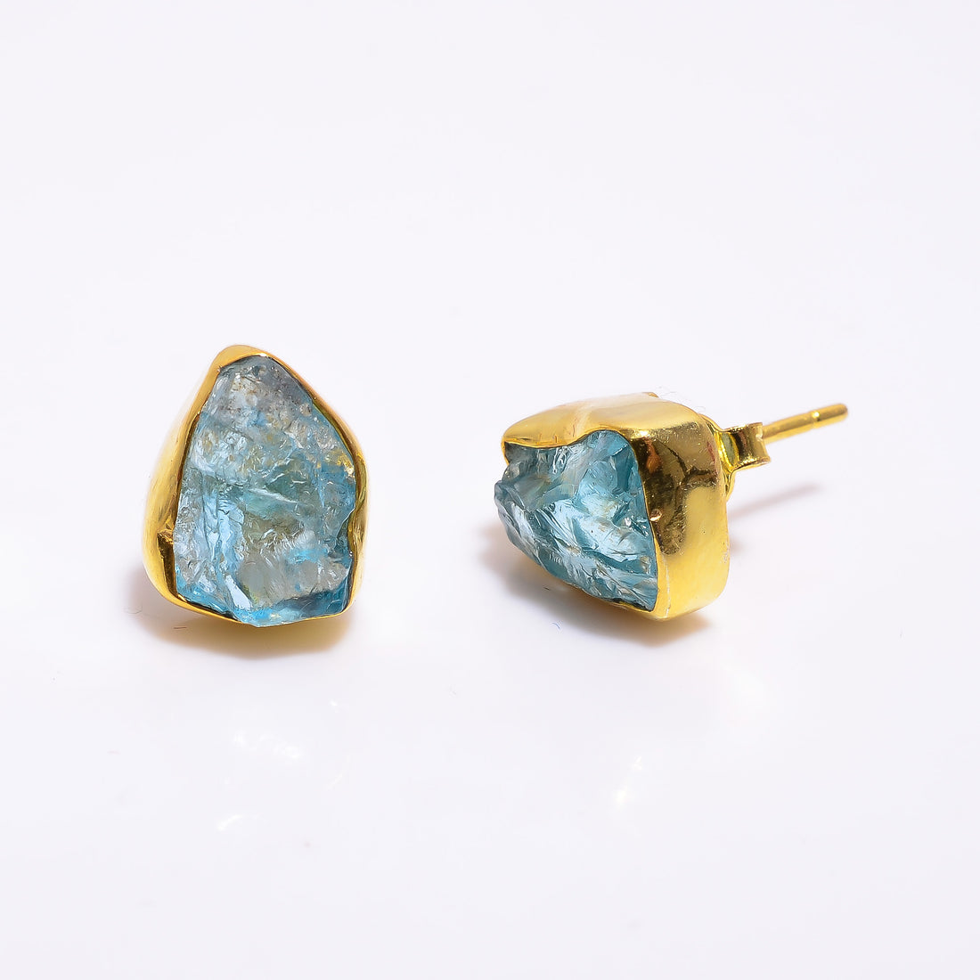 Raw Sky Apatite 925 Silver Gold Plated Stud Earrings