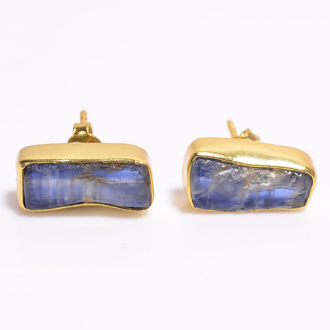Raw Blue Kyanite 925 Silver Gold Plated Stud Earrings
