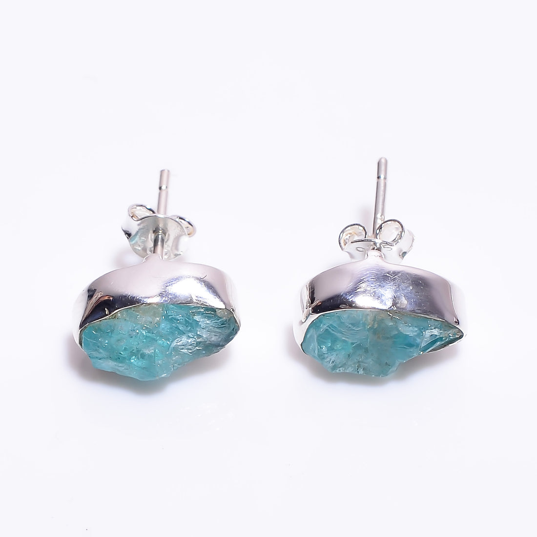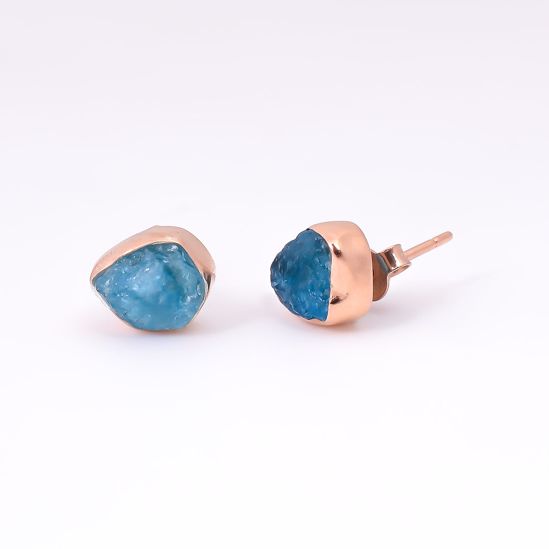 Raw Neon Apatite 925 Silver Rose Gold Plated Stud Earrings