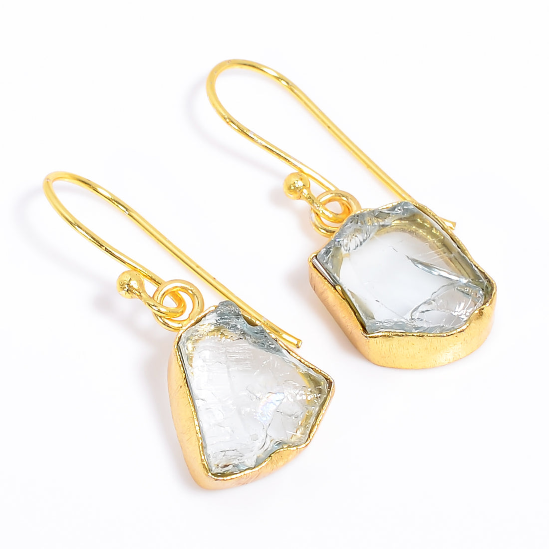 Rough Herkimer Diamond 18K Gold Plated Earrings