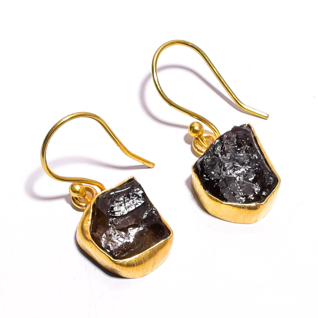 Rough Smoky Quartz 18K Gold Plated Earrings