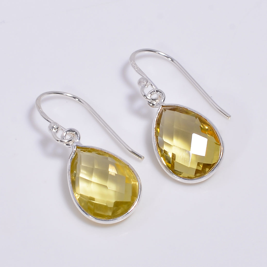 Lemon Quartz Pear Cut 925 Silver Drop Earrings