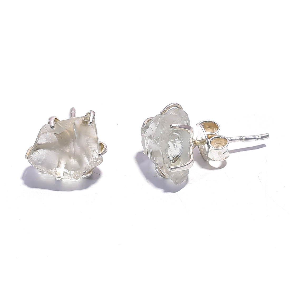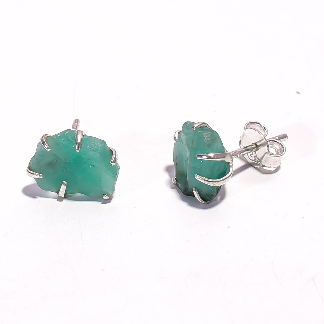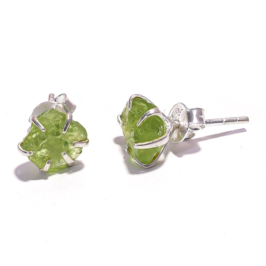 Raw Green Amethyst 925 Silver Prong Stud Earrings