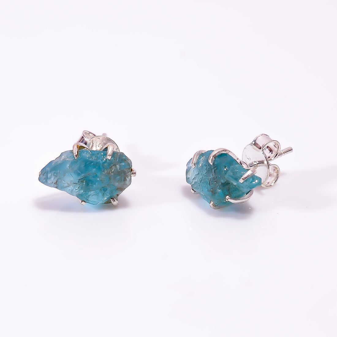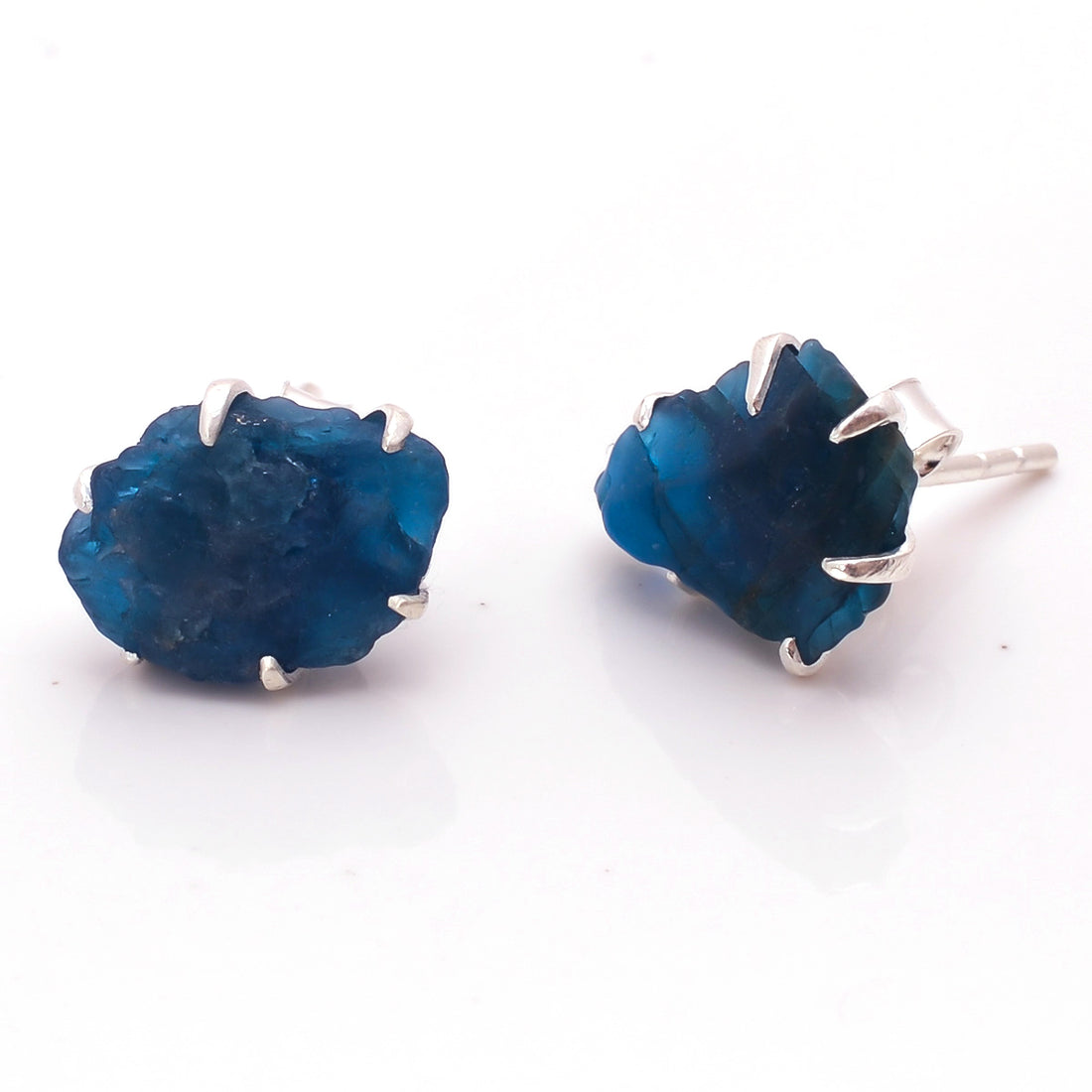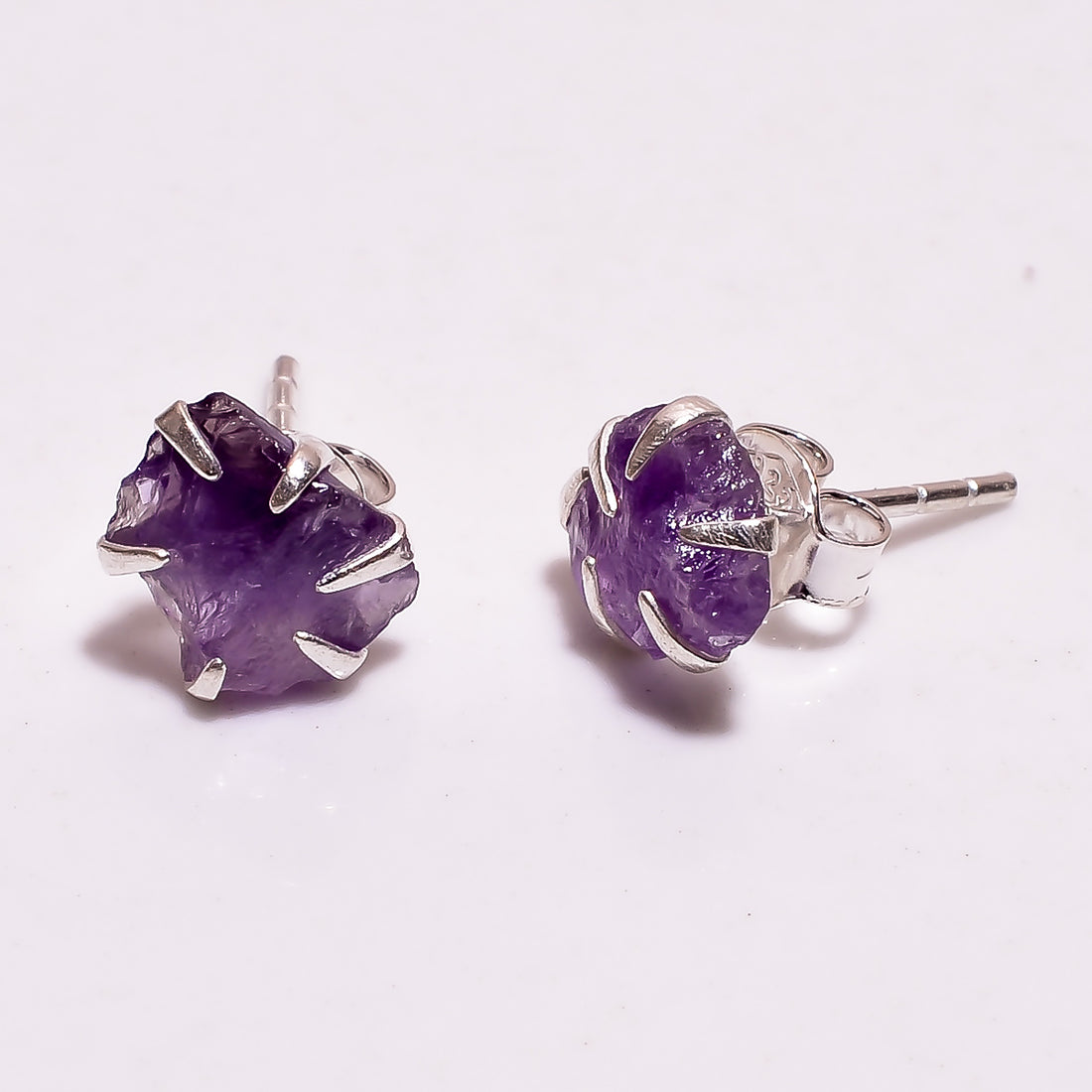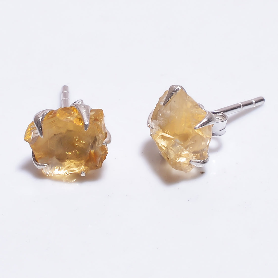 Raw Green Amethyst 925 Silver Prong Stud Earrings