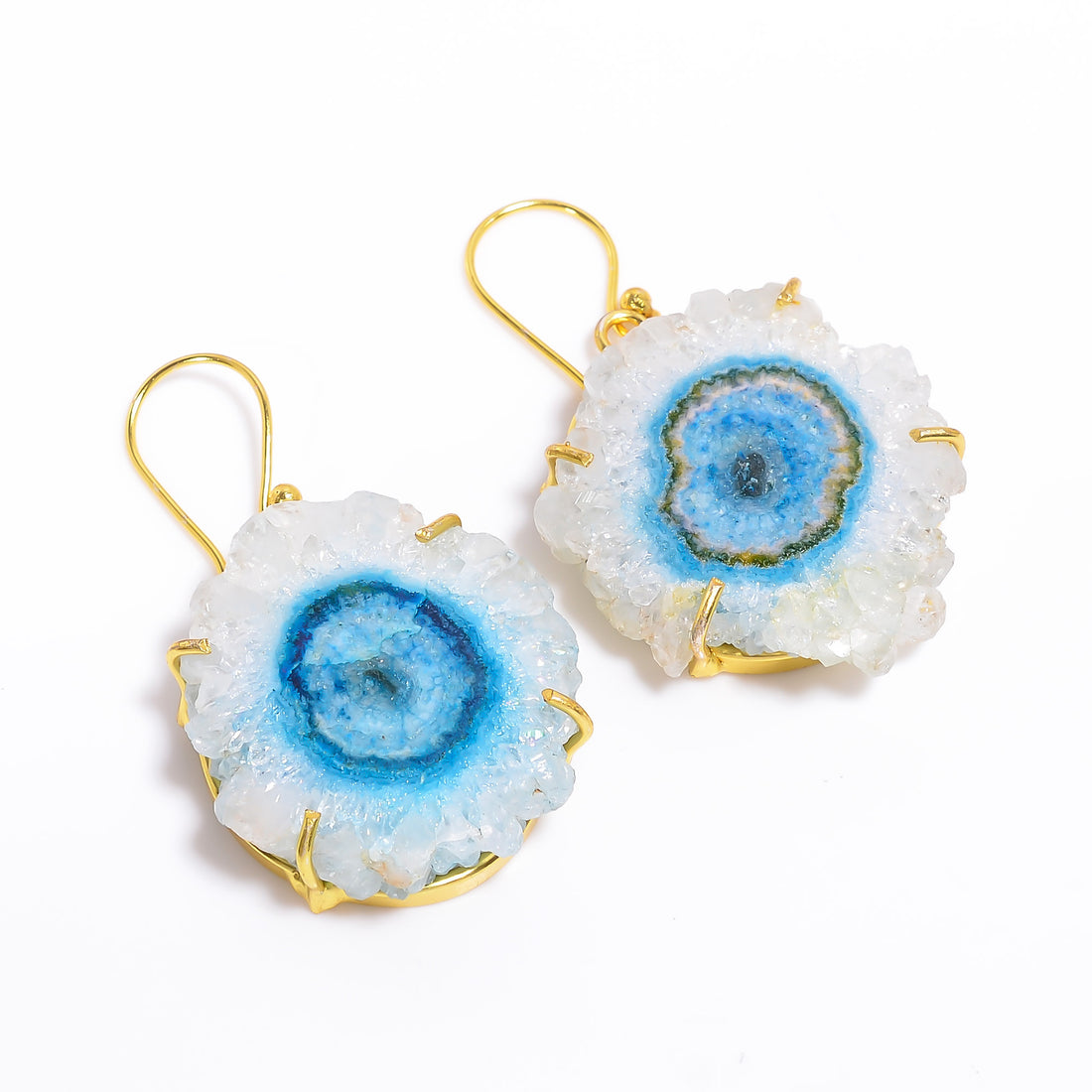 Rough Druzy Gemstone 18K Gold Plated Earrings