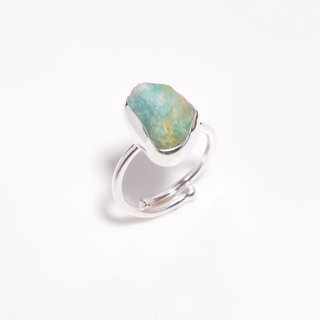 Raw Amazonite 925 Sterling Silver Adjustable Ring - US 7.75