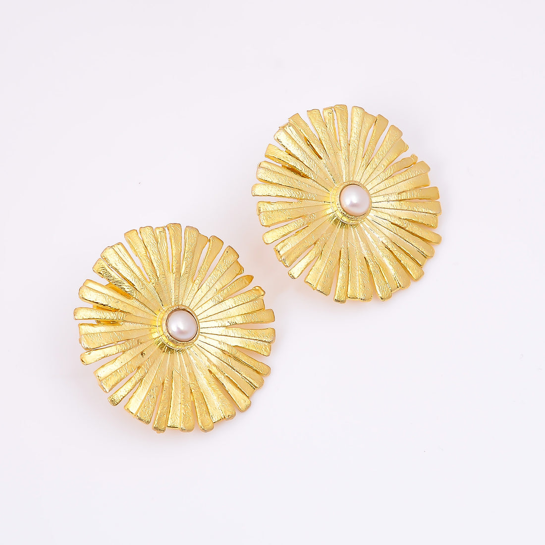 Rainbow Moonstone Rough 18K Gold Plated Stud Earrings
