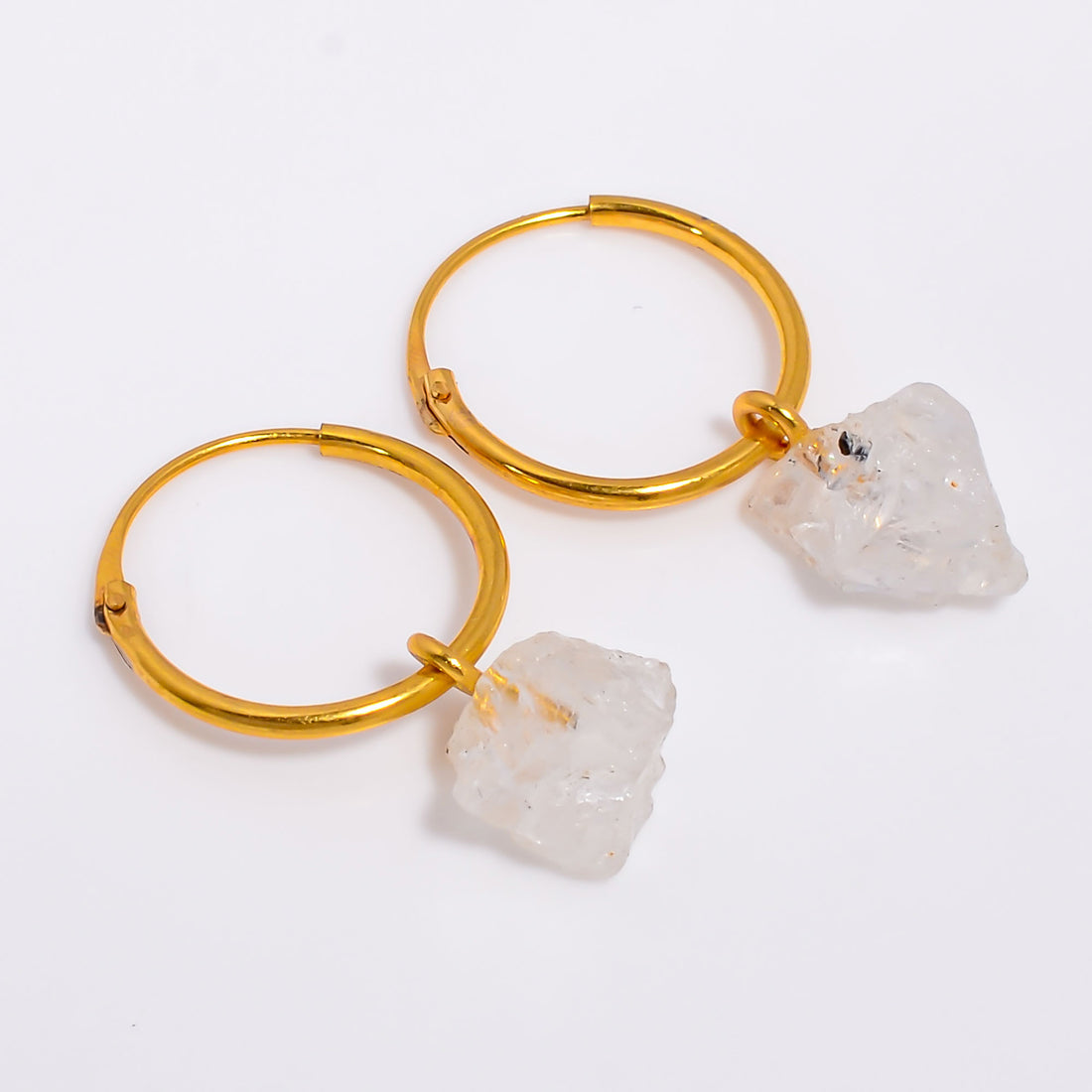 Raw Rainbow Moonstone 18K Gold Plated Hoop Earrings