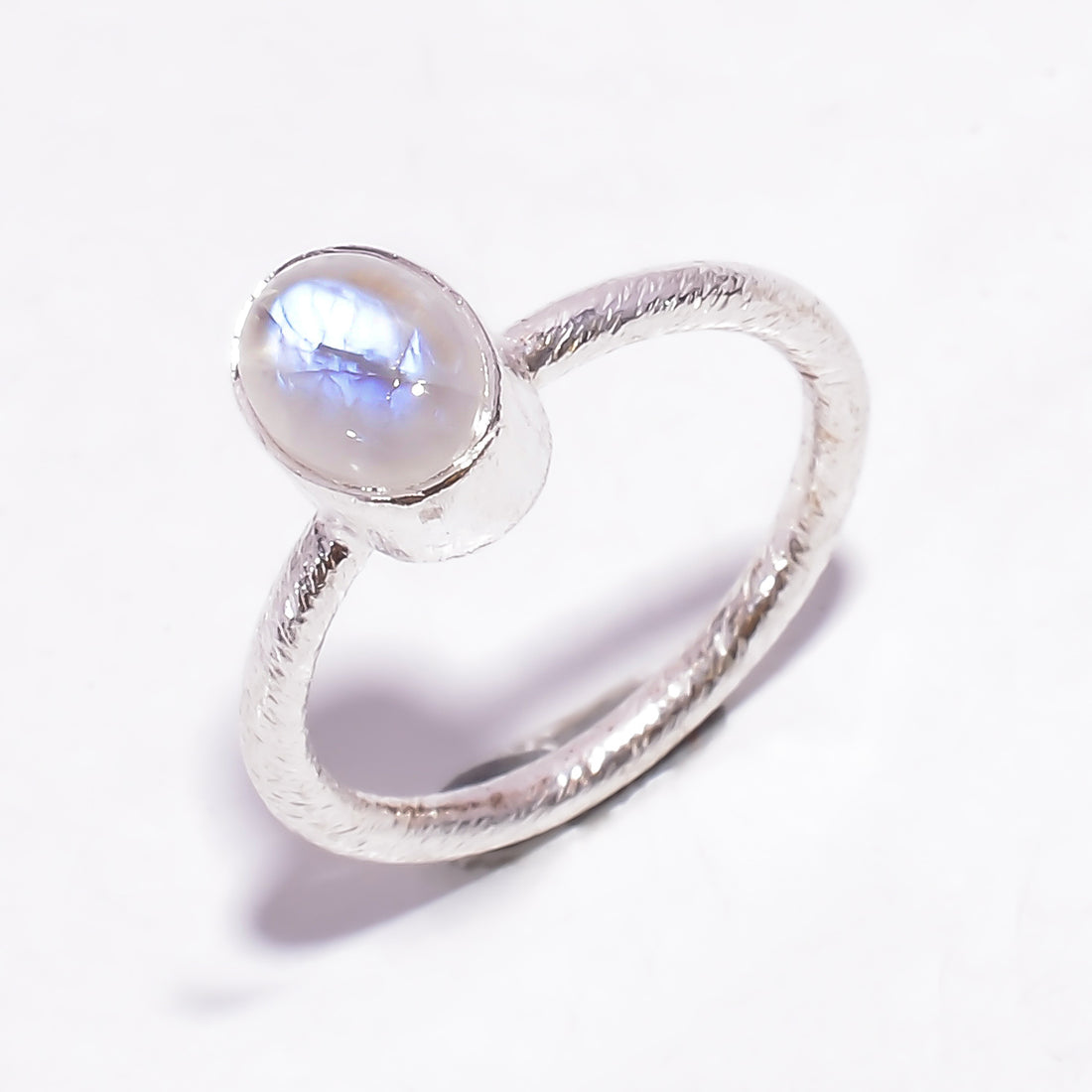 Natural Rainbow Moonstone 925 Sterling Silver Stackable Ring