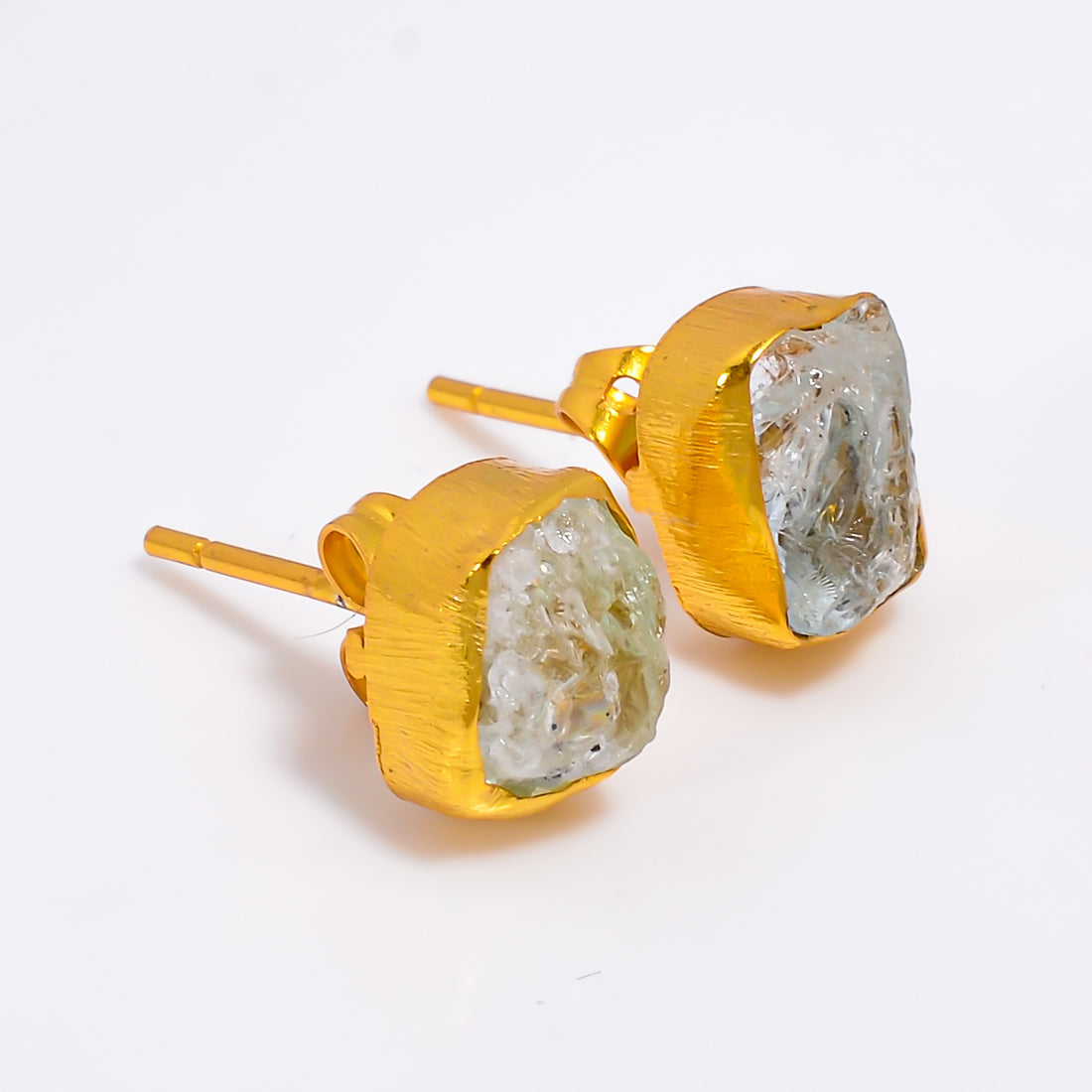 Aquamarine Rough 18K Gold Plated Stud Earrings