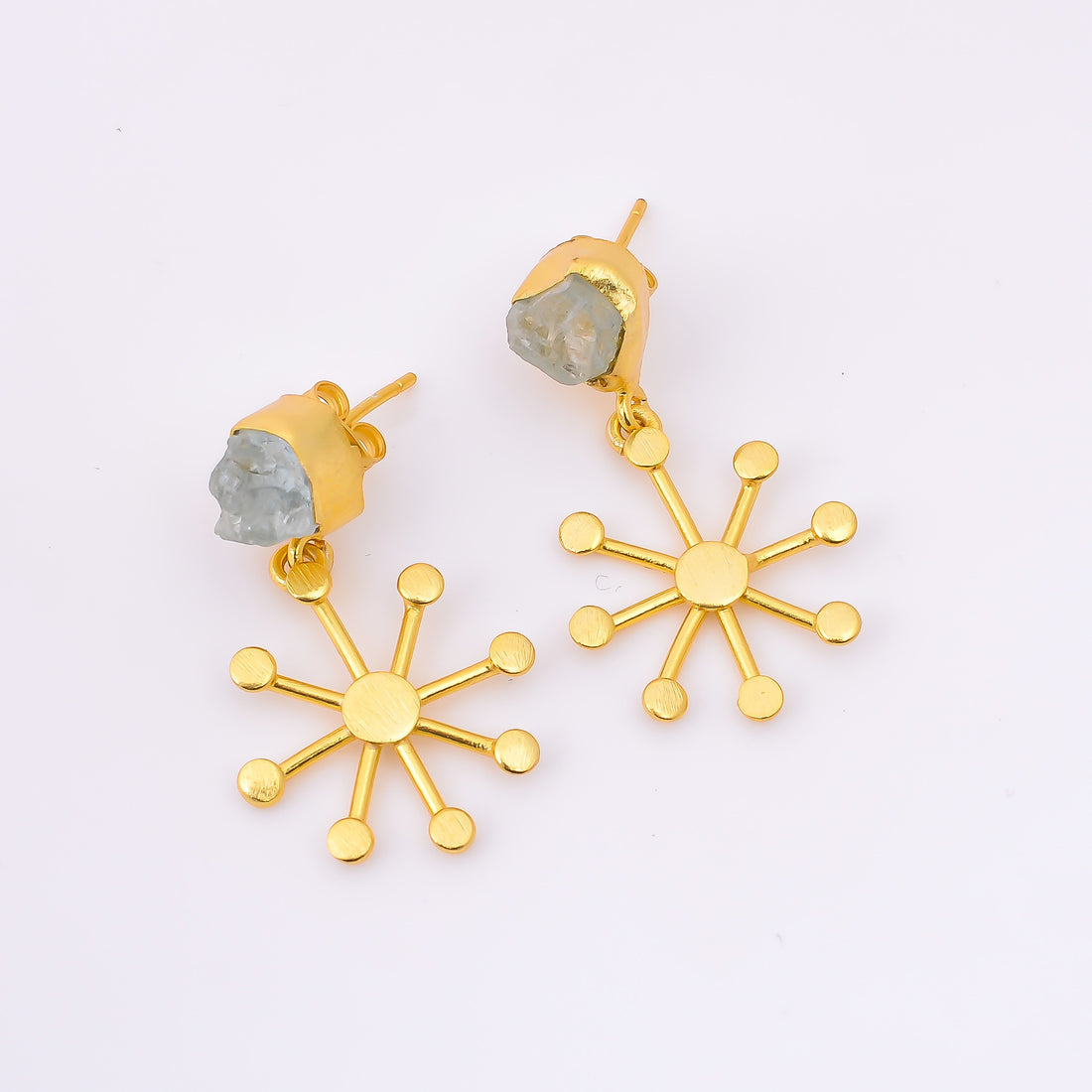 Aquamarine Rough Gemstone 18K Gold Plated Brass Earrings