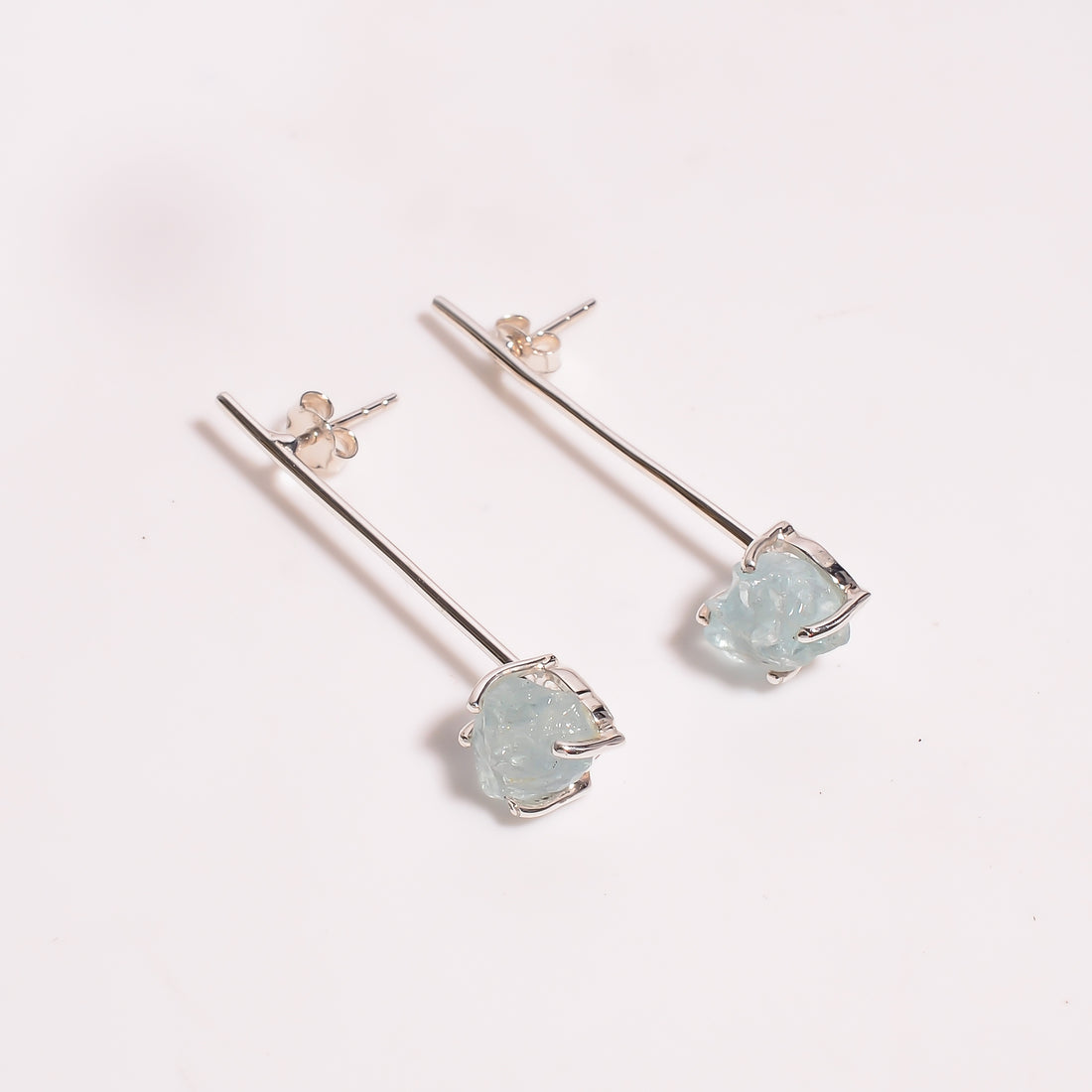 Aquamarine Raw Gemstone 925 Sterling Silver Earrings