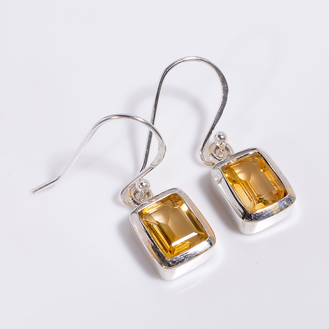 925 Sterling Silver Drop Earrings Citrine Emerald Cut Gemstone