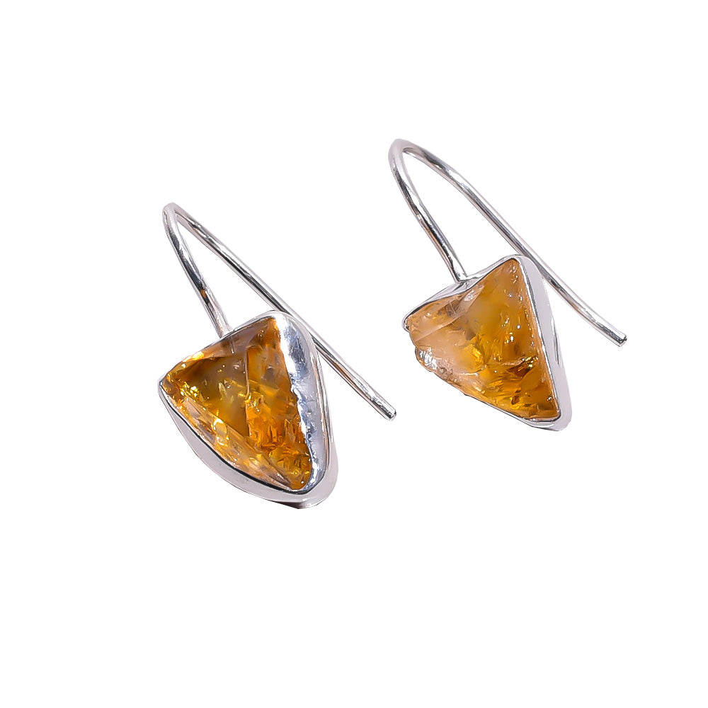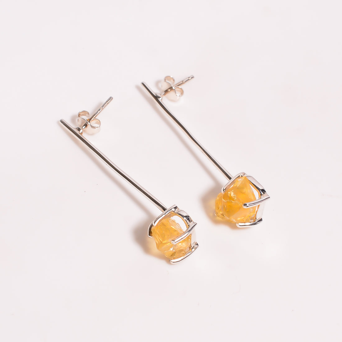 Citrine Raw Gemstone 925 Sterling Silver Earrings