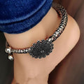 Adjustable Kada Anklet. Round Shaped with tribal design. Suitable to wear during festival season. Trendy and Chic Jewelry. Provides and antique look. Bright silver finishing with an antique colour touch.