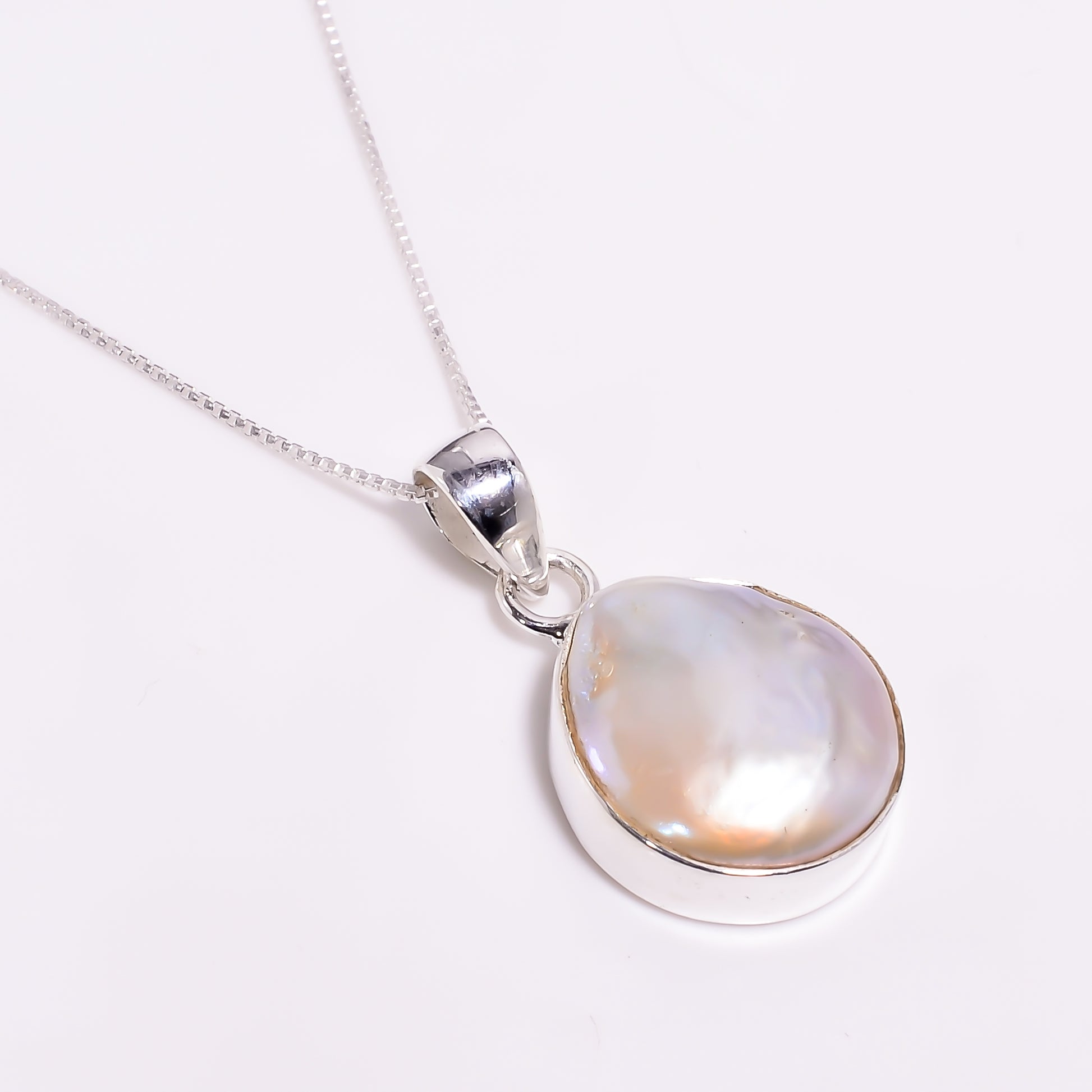 925 Sterling Silver Baroque Pearl Pendant With Box Chain Necklace