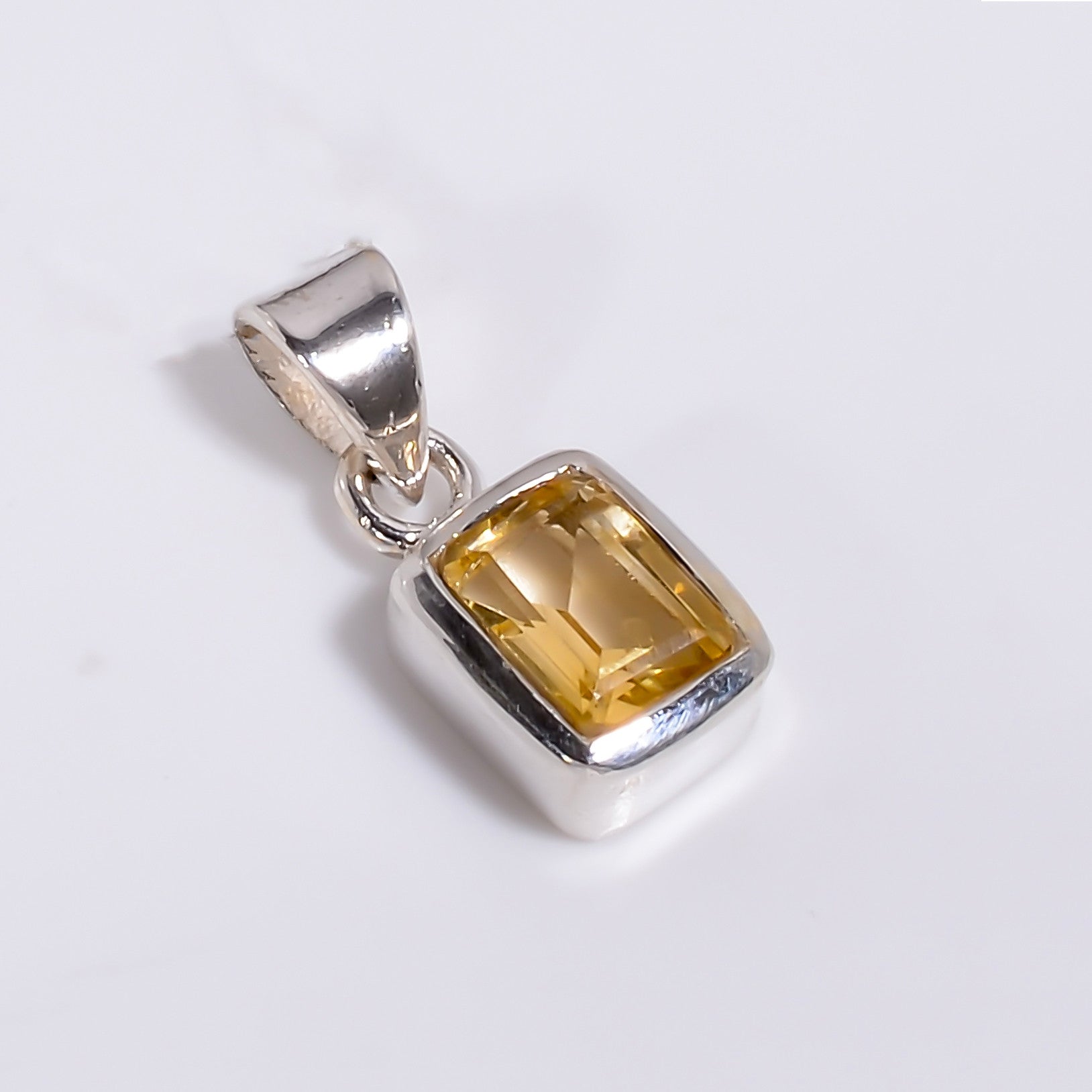 Citrine Emerald Cut Gemstone 925 Sterling Silver Pendant