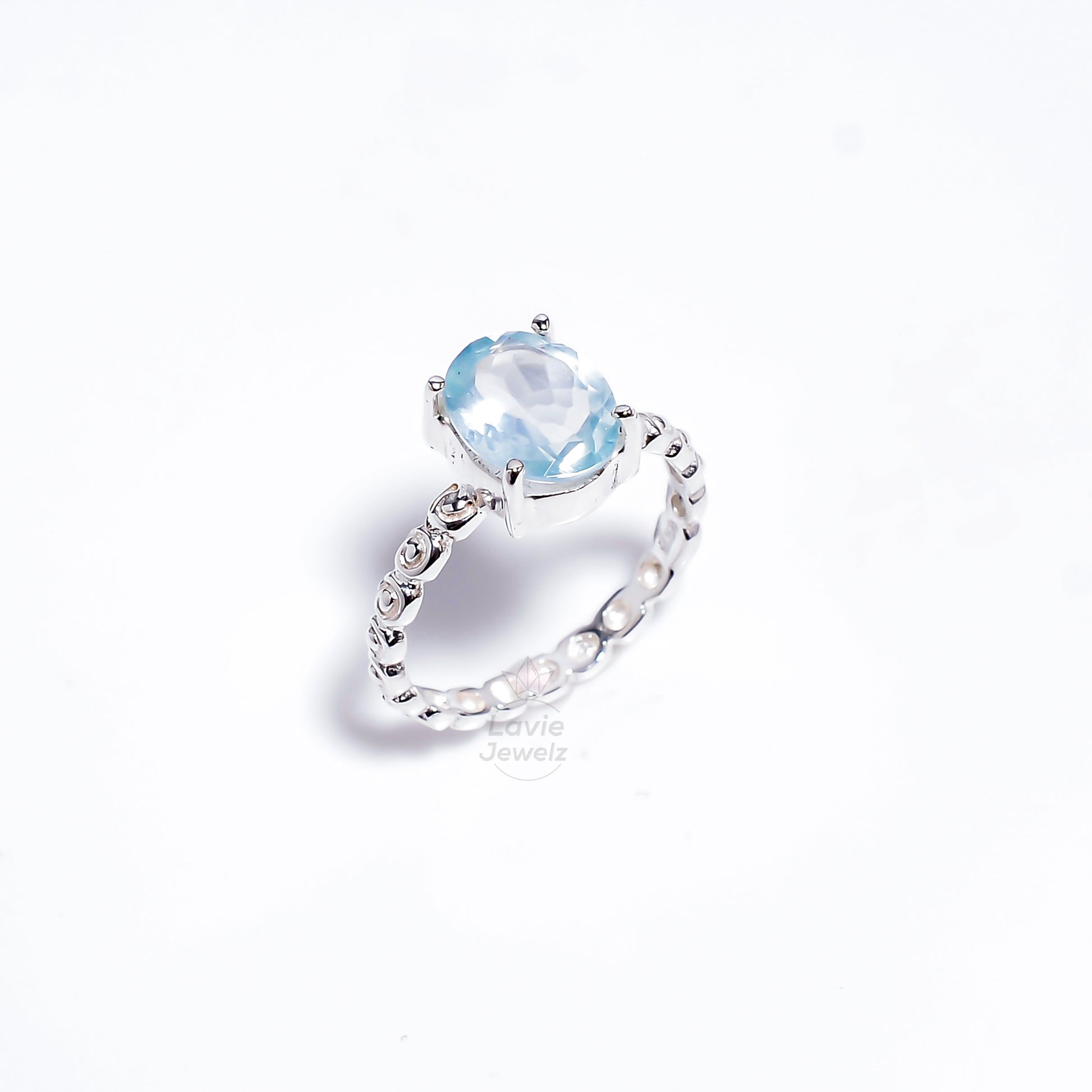 Oval Aquamarine 925 Sterling Silver Ring - US 7