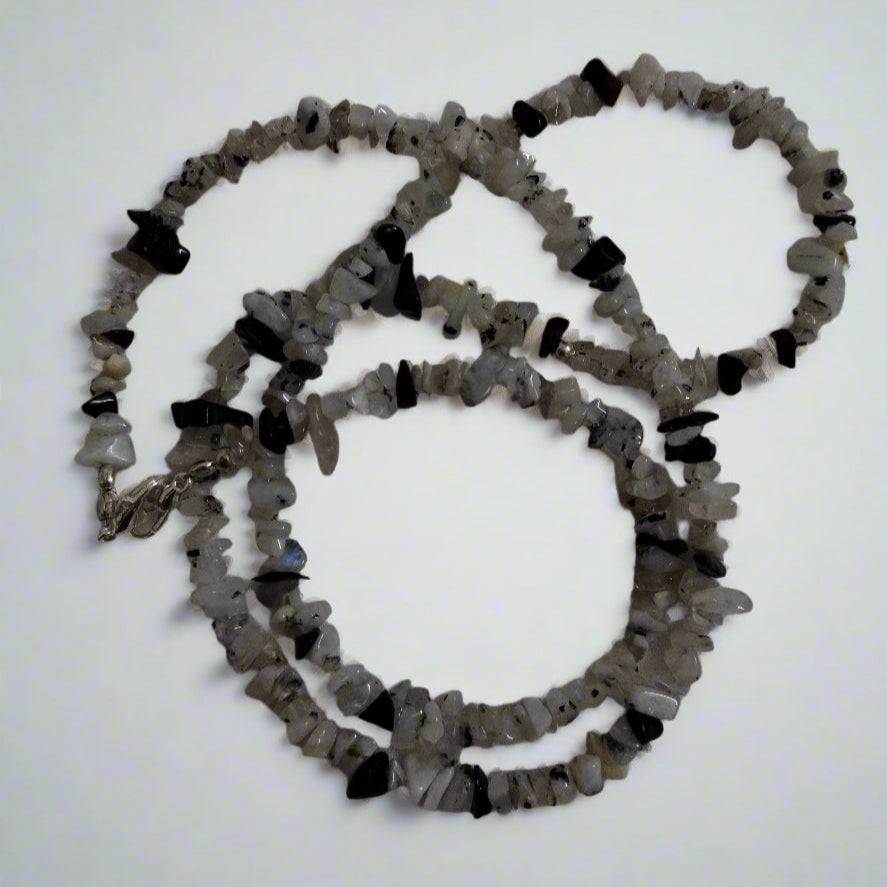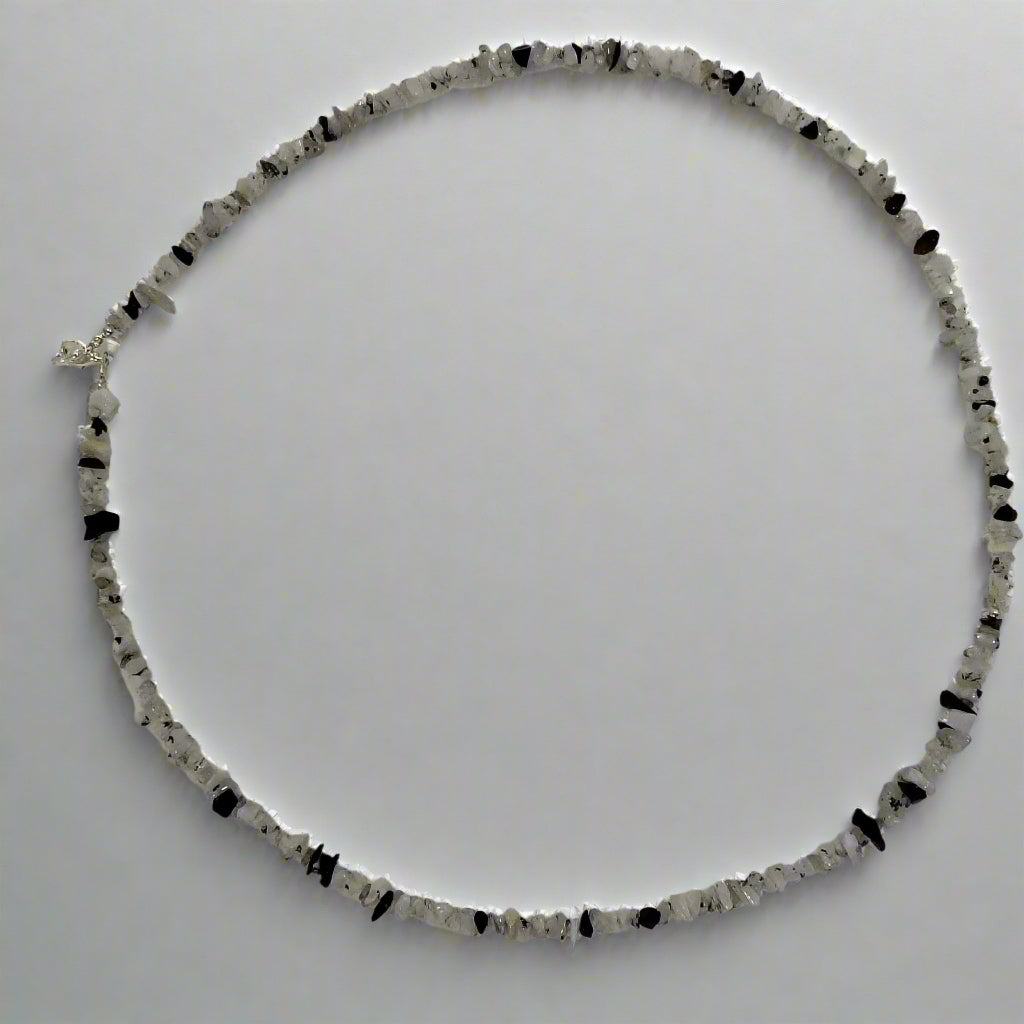 A beautifully handcrafted stone bead necklace featuring natural chip stones strung together for a raw, earthy appeal. Perfect for casual wear or layering with other pieces for a boho-chic statement.