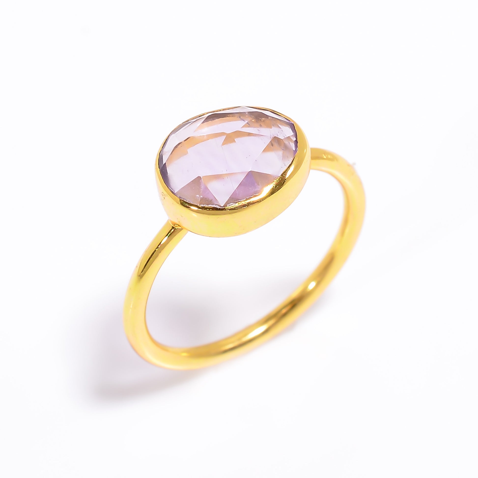 Gold Plated Amethyst 925 Sterling Silver Stackable Ring