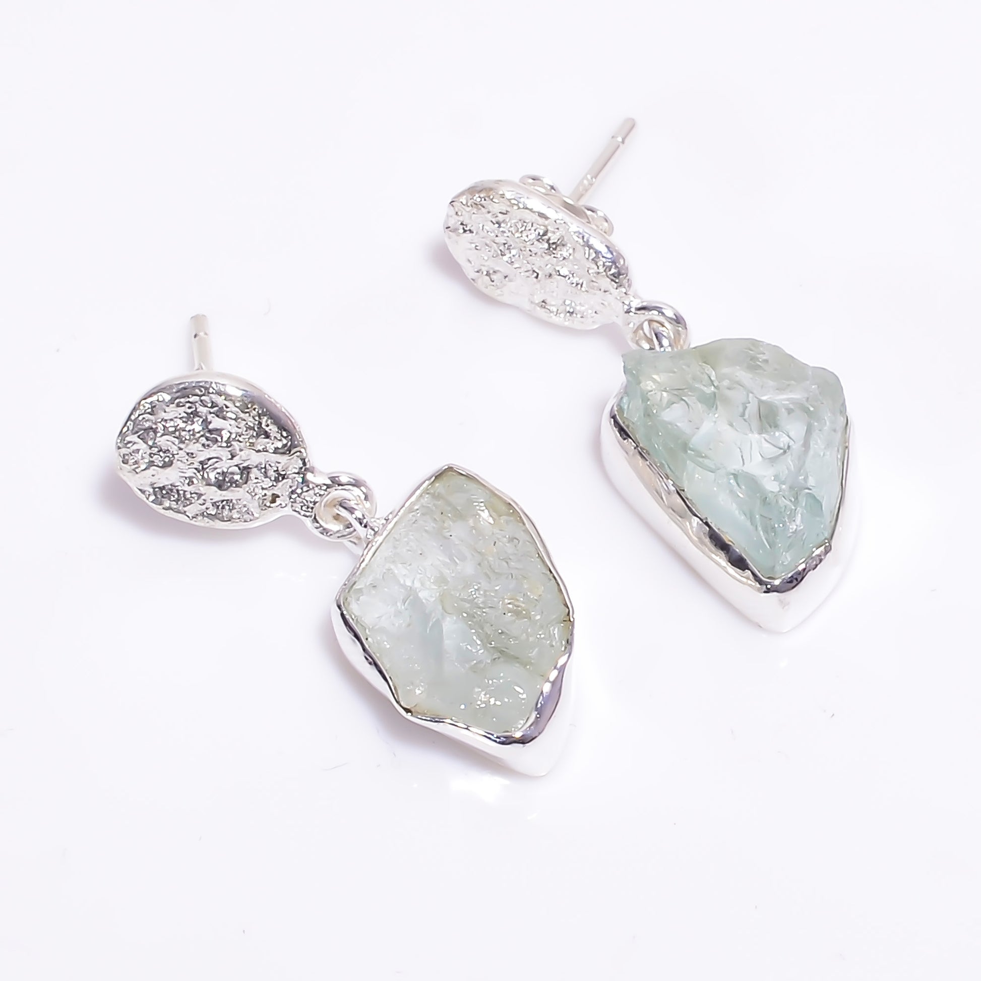 Aquamarine Raw Gemstone 925 Sterling Silver Earrings
