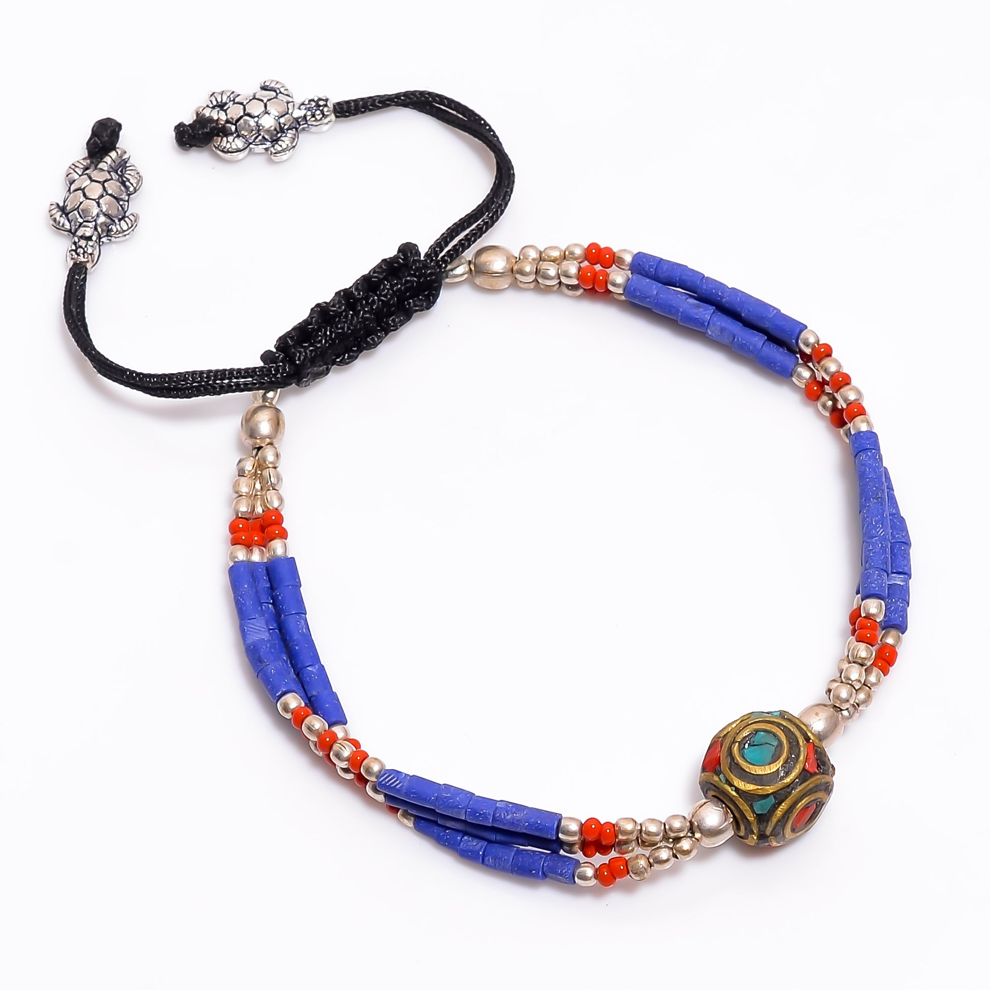 Lapis & Coral Tibetan Silver Adjustable Bracelet