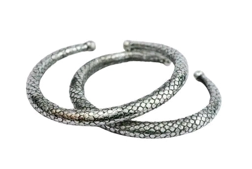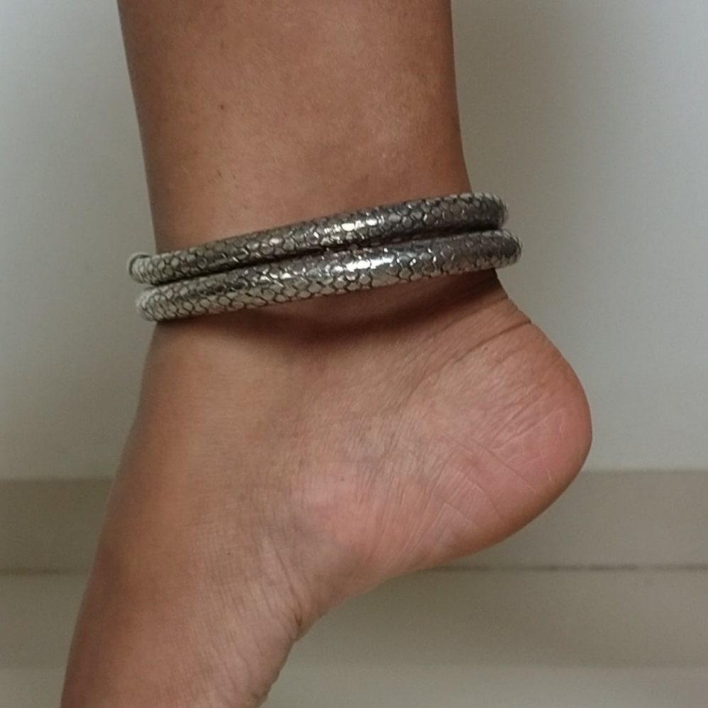 Make a bold statement with these textured open cuff anklets, designed with a striking scale-like pattern.